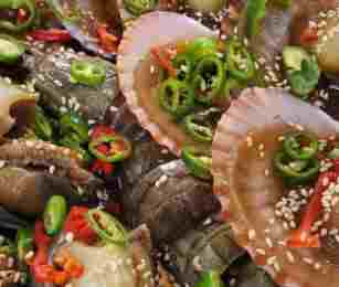 니다. 여러분은 이것이 보기 좋은 게라는 것을 알 수 있습니다, 그렇죠? 그것이 제가 경상남도 고성 식당에서 노래를 부르는 이유입니다.소금에 절인 게장에도 잘 어울리는 계란찜이 있습니다. 누룽지 마솥밥은 개인 냄비로 나옵니다. 이렇게 쌀이 나오면 뚜껑을 열고 밥을 꺼내서 뜨거운 물을 부어 나중에 사용할 누룽 쌀을 만듭니다. 맛없기 시작하네요. 신나요! 참깨와 신선한 가리비를 곁들인 가리비입니다. 잘 만들었어요. 그렇게 짜지는 않아요. 그냥 밥 한 숟가락이에요. 밥 한 그릇이라고 불러야 할 것 같아요. 설기, 아니요, 가지